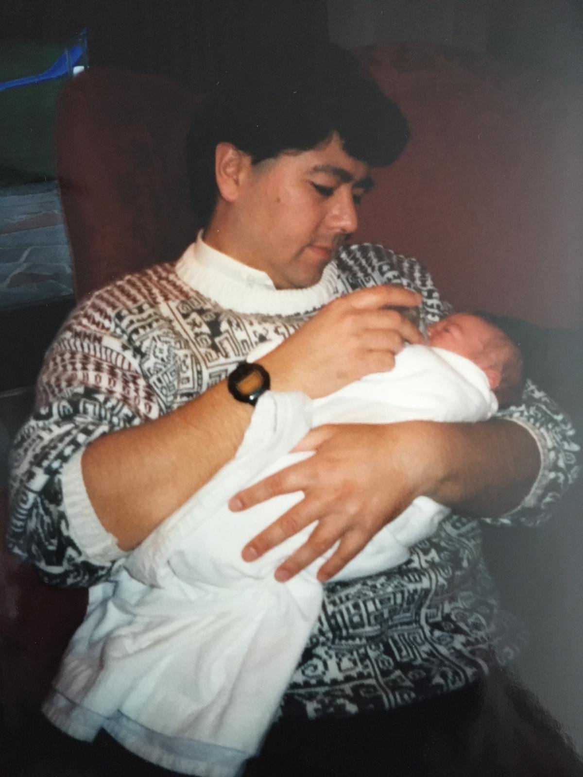 Julian with his first born, Chloe. June 1990.